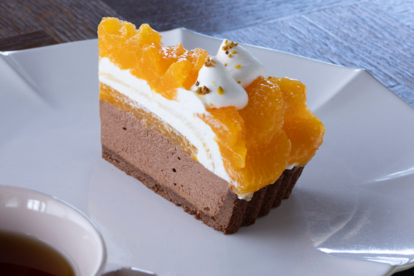 フレッシュな果実と仏産ビターチョコムース、濃厚なピュレの層。 重厚感あるまろやかなショコラタルト。