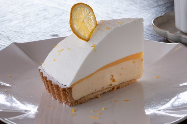 檸檬果汁をたっぷりと含んだホイップを支える、果汁とピール、二種のカスタードムース。うちやま果樹園のマイヤーレモンをふんだんに使用し シンプルな定番タルトです。